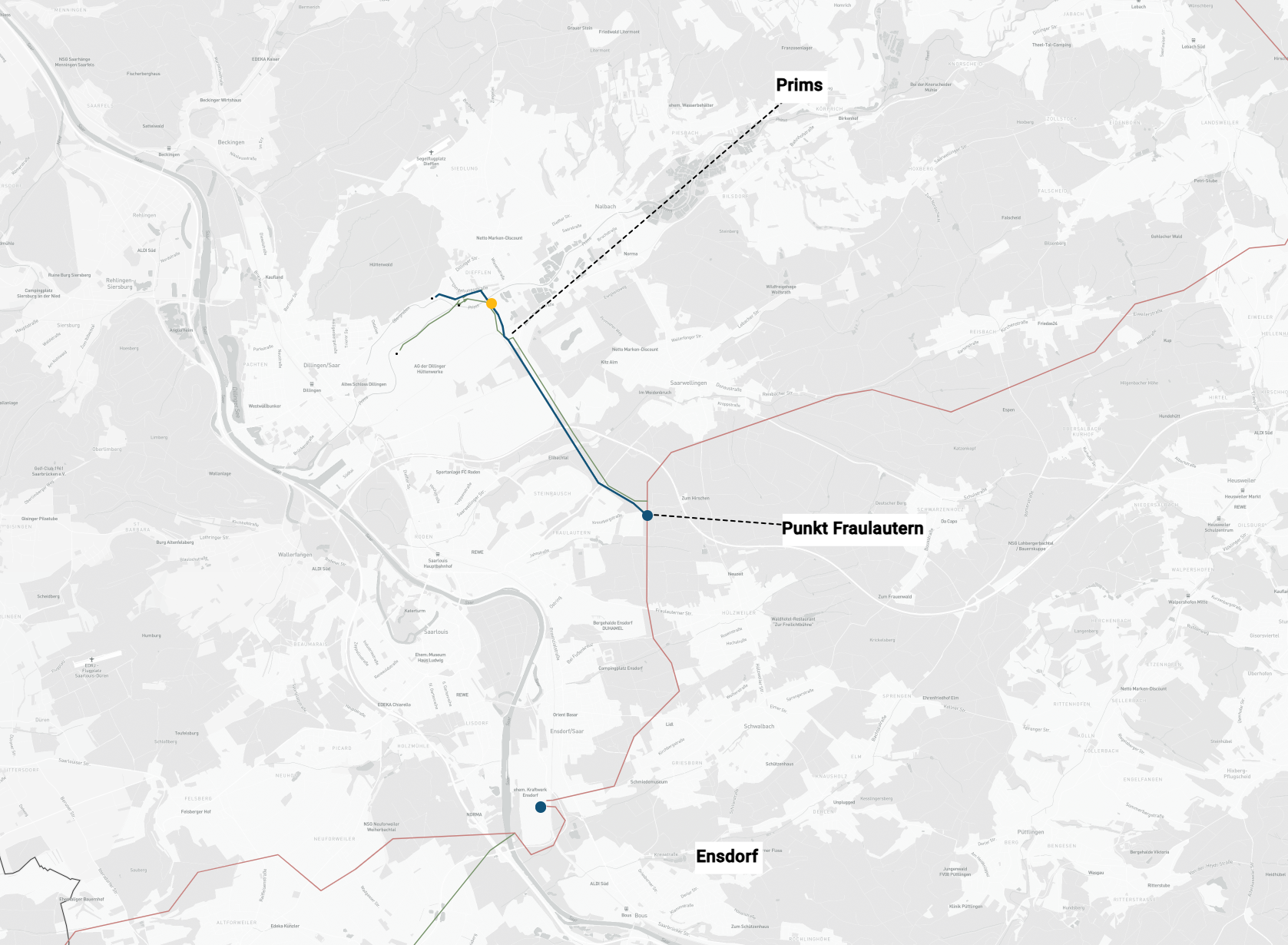 Im Saarland wird ein zusätzlicher Leistungsbedarf in den dortigen Industrienetzen erwartet. Hierdurch kommt es an den Einspeisepunkten Obergraben und Dillinger Hütte zu Überlastungen der bestehenden 220-kV/MS-Transformatoren. Zur erforderlichen Verstärkung des Einspeisequerschnitts wird der 380-kV-Einspeisepunkt Prims neu errichtet. Eine Versorgung der zusätzlich benötigten Leistung aus dem 220-kV-Netz ist bedingt durch das schwache 220-kV-Netz nicht sinnvoll. Mit dem hier beschriebenen Konzept wird nur geringfügiger Leitungsbau erforderlich und durch teilweise Umstellung bestehender 220-kV-Stromkreise auf 110-kV nachhaltig für einen sicheren Betrieb des Transportnetzes gesorgt. Die dazu umgesetzten Maßnahmen sind langfristig angelegt. Die Auswirkungen auf Fremdeigentum und Umwelt wurden dabei berücksichtigt und so gering wie möglich gehalten. Eine Umstellung der bisherigen 220-kV-Standorte Obergraben und Dillinger Hütte auf 380-kV wäre nur durch 380-kV-Leitungsbau durch die Industriestandorte möglich und würde aufgrund benötigter Freischaltungen die zeitweise Stilllegung der Kunden bedeuten.