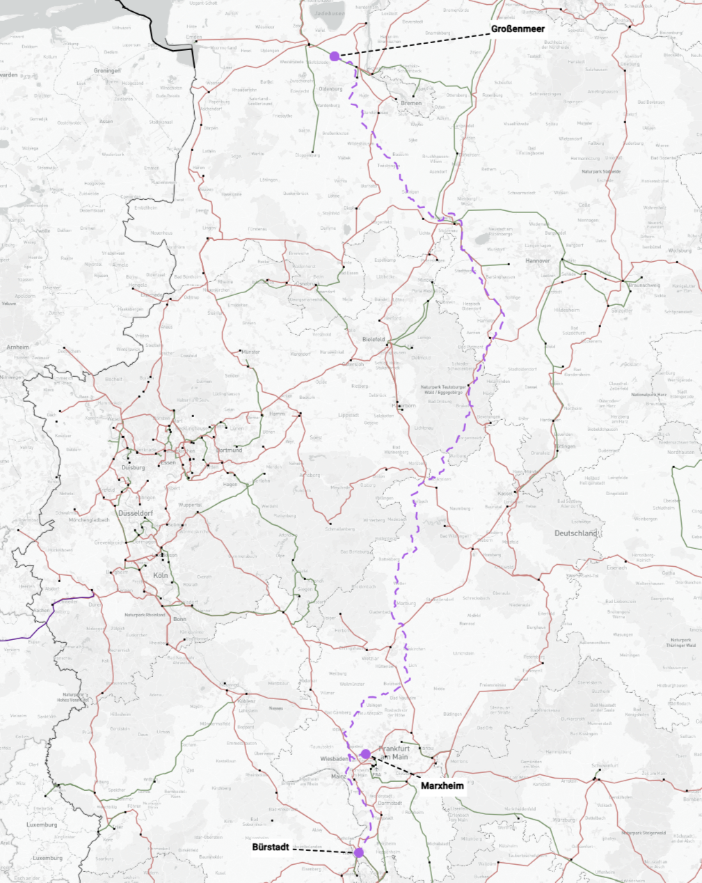 Die geplante Schaltanlage Großenmeer ist wegen der küstennahen Lage gut geeignet, um Offshore-Windenergie anzuschließen. Darüber hinaus kann über die geplanten DC-Verbindungen die in der Region nordwestliches Niedersachsen stark konzentrierte Leistung aus Onshore-Windenergie abtransportiert werden. Bürstadt sowie Marxheim sind wegen der Nähe zum Frankfurter Raum und den umliegenden Industrieschwerpunkten als zentrale Verbrauchsschwerpunkte geeignet.
