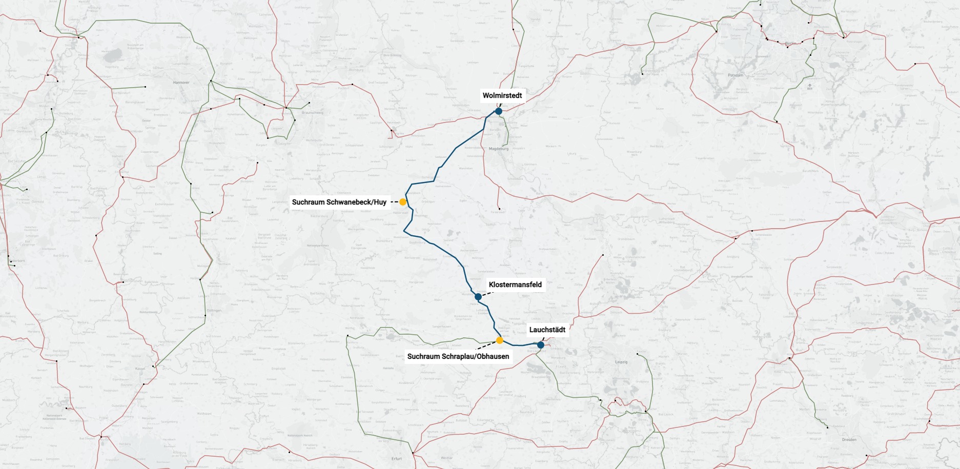 Netzverstärkung: Wolmirstedt - Suchraum Schwanebeck/Huy - Klostermansfeld - Querfurt - Lauchstädt